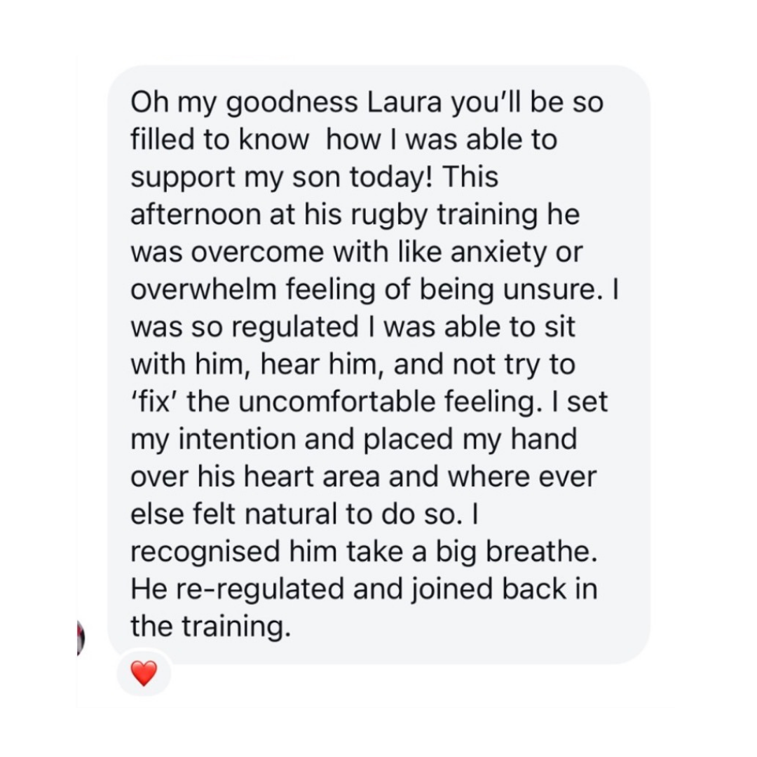This Mumma was able to help her son regulate through a moment of anxiety with what she learnt in level 1.