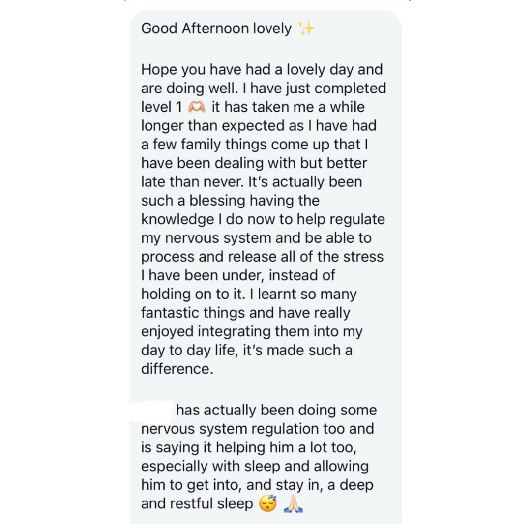 After completing level 1 and 2, this Mumma was able to facilitate a gentle release for her 4-year-old son, which allowed him to finally sleep through the night!