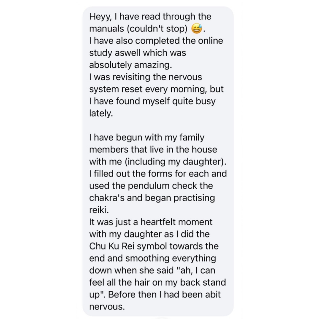 Note: If you want to work as a Reiki Practitioner you will need to also complete level 2 at some point, after you've complete level 1 with me. If want to learn both level 1 and 2 at the same time, please let me know in your enrolment form.